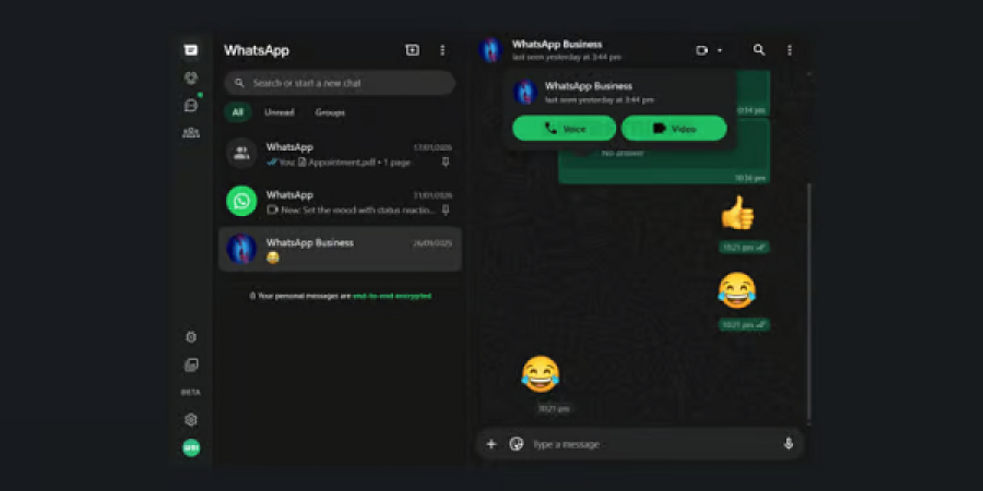 WhatsApp déploie les appels vocaux et vidéo sur son service dans le navigateur, sans installer l’application pour ordinateur. Le lancement commence par les appels entre deux personnes depuis une conversation, avec ensuite des appels de groupe, des liens d’appel et des appels planifiés. Les échanges restent protégés par un chiffrement de bout en bout. Le partage d’écran est aussi disponible, utile notamment pour les utilisateurs de Linux.